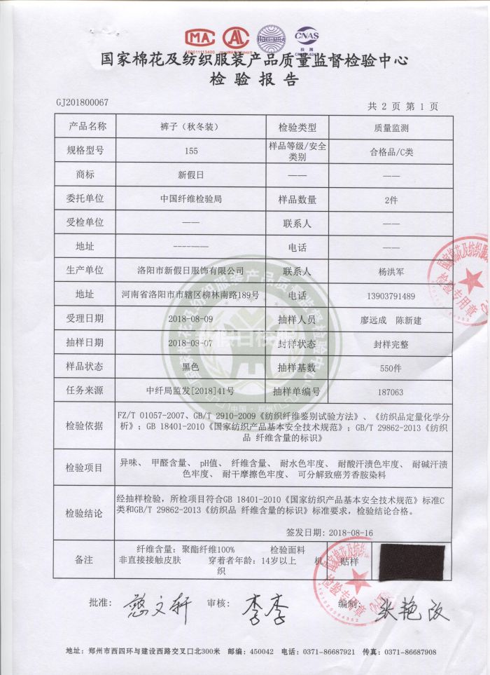下一篇:上衣(秋冬裝)檢驗合格報告