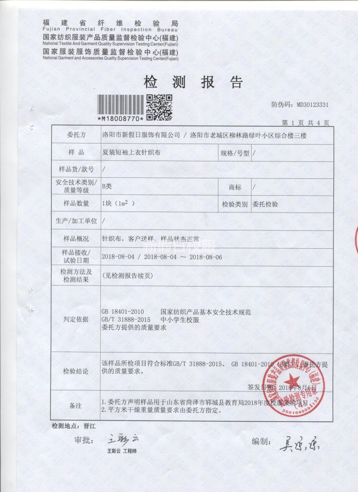 下一篇:夏季長褲\七分褲 檢驗合格報告