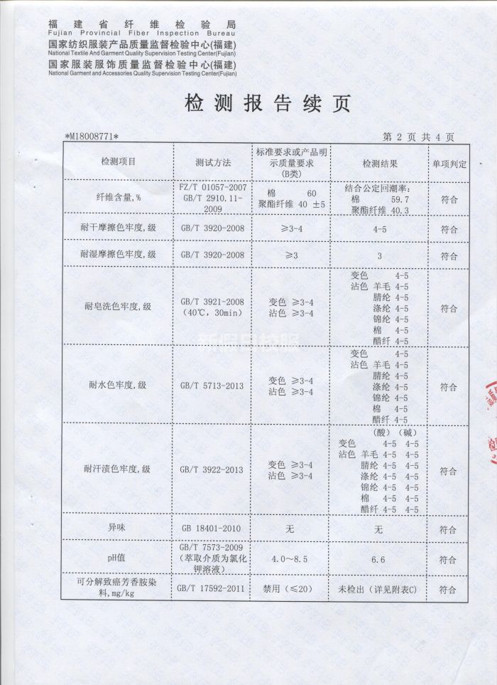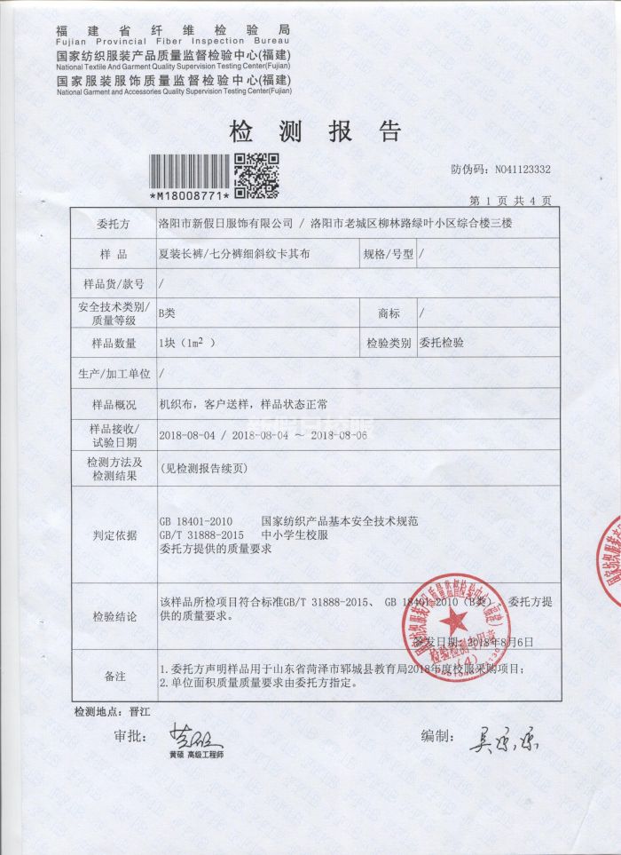夏季長(zhǎng)褲\七分褲 檢驗(yàn)合格報(bào)告